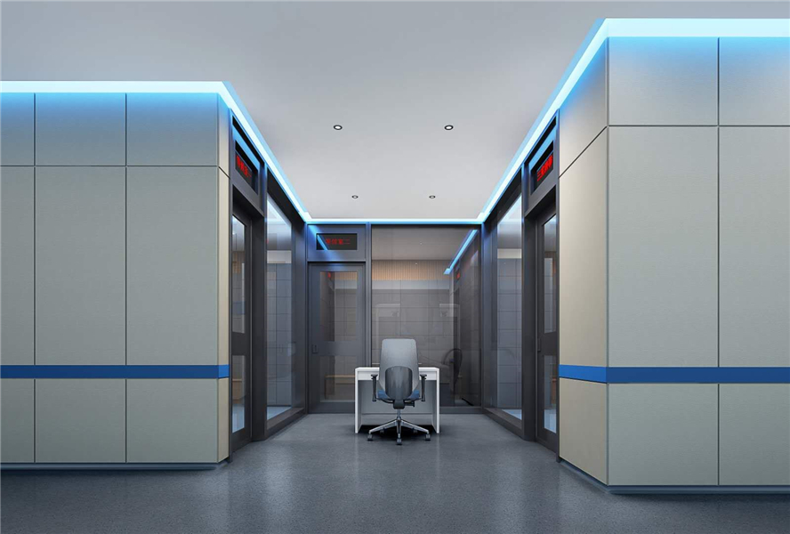 凱音審訊室防撞軟包是一種具備防撞、防火、阻燃、環(huán)保、隔音、吸音等多種功能為一體的功能性裝飾材料。表面飾面為防火布藝、防火皮革飾面或其他客戶所需定制飾面。其產(chǎn)品廣泛使用在電影院、會(huì)議室、紀(jì)委審訊室、審問室、辨認(rèn)室、談話室、醒酒室等墻面裝飾。